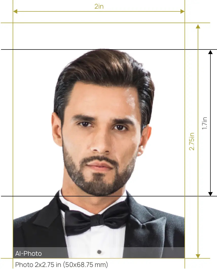 When you are applying for a document like a passport or visa, an inevitable task might lie in getting a proper photo size. However, different documents have set up respective rules for their photos. That's why universal photographs can prove their value. A universal photograph in electronic or printed form can be one of the most prevailing options at the photography studio. Photo 2×2.75 falls into the category of the universal photograph. The width should be 2 inches, and the height should be 2.75 inches, which equals to the dimensions 50 by 68.75 mm. (or 5 x 6.875 centimeters photograph)