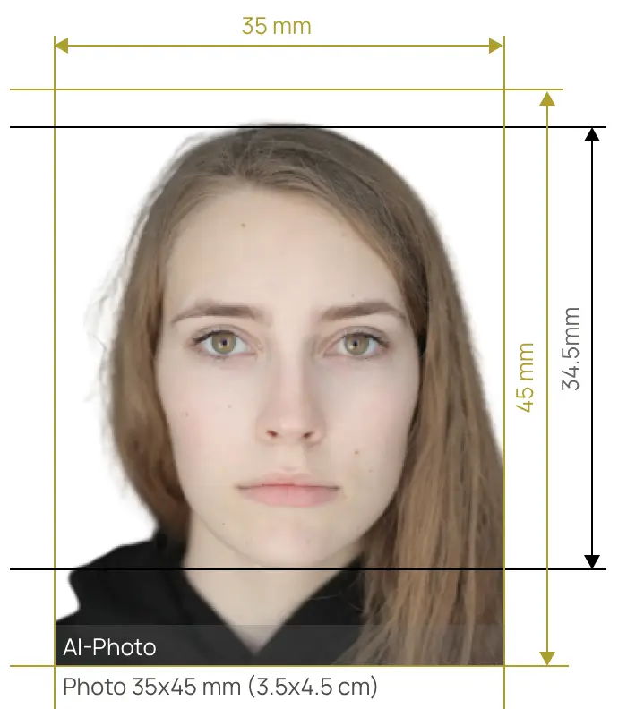 For the final step, you can turn to AiPassportPhotos! We can help you crop your picture to meet all the size requirements. Additionally, we can change your background if necessary and replace it with a suitable one. Once we have made the necessary adjustments, we will send back a printable 35 x 45 mm photo in digital format. With the digital photo, you can apply online or print it out for paper applications.