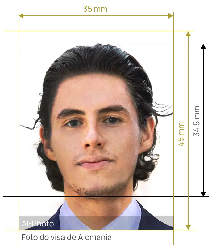 Aquí hay una lista de algunos tamaños y requisitos de fotos de pasaportes alemanes, sigue desplazándote si quieres saber más sobre las especificaciones de las fotos: