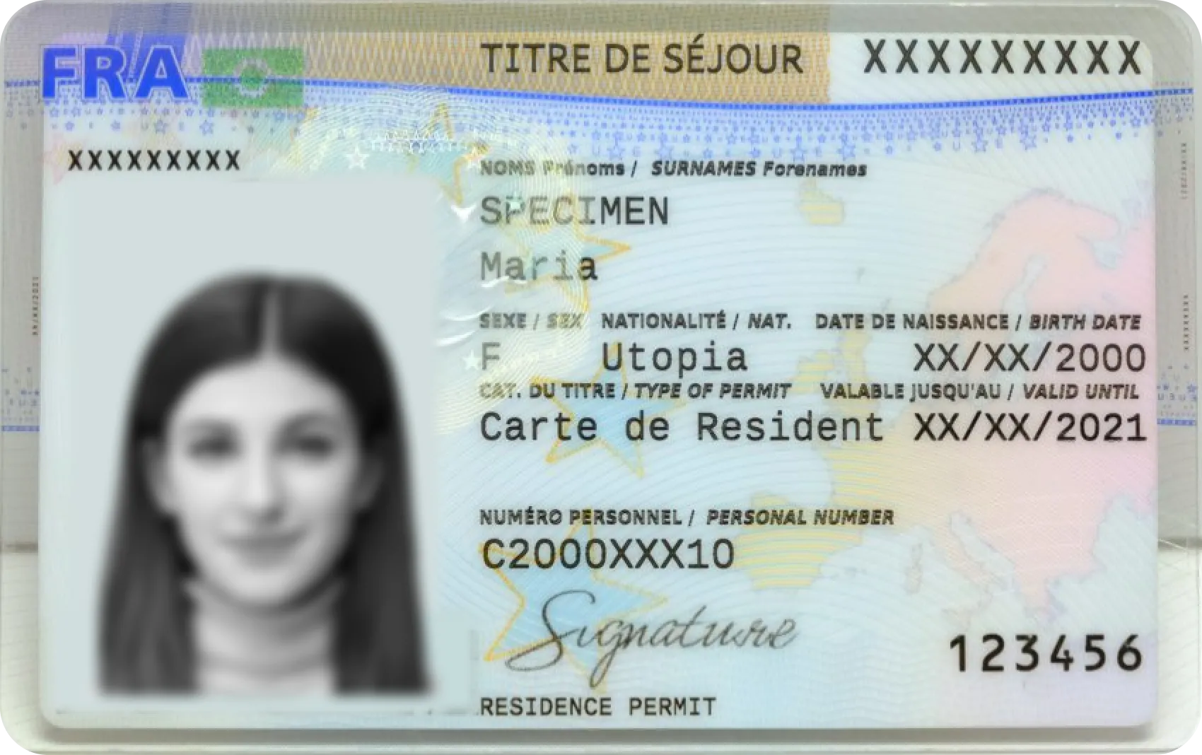 Les étrangers résidant en France doivent obtenir un titre de séjour sur le site Web de l'Administration numérique des étrangers en France (ANEF) et une photo numérique du titre de séjour doit être soumise. Elle peut être identique à une photo d'identité pour passeport. Pour garantir la clarté de la photo, la résolution doit être d'au moins 600 DPI.