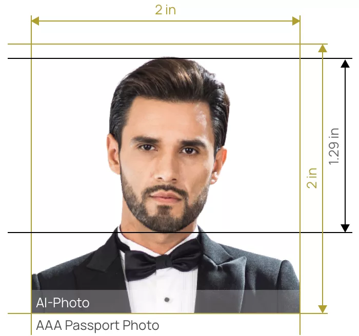 1. The size of the photo must be exactly 2 x 2 inches (or 51 mm x 51 mm), with your head size ranging from 1 to 1 ⅜ inch from the top to the bottom of the head.